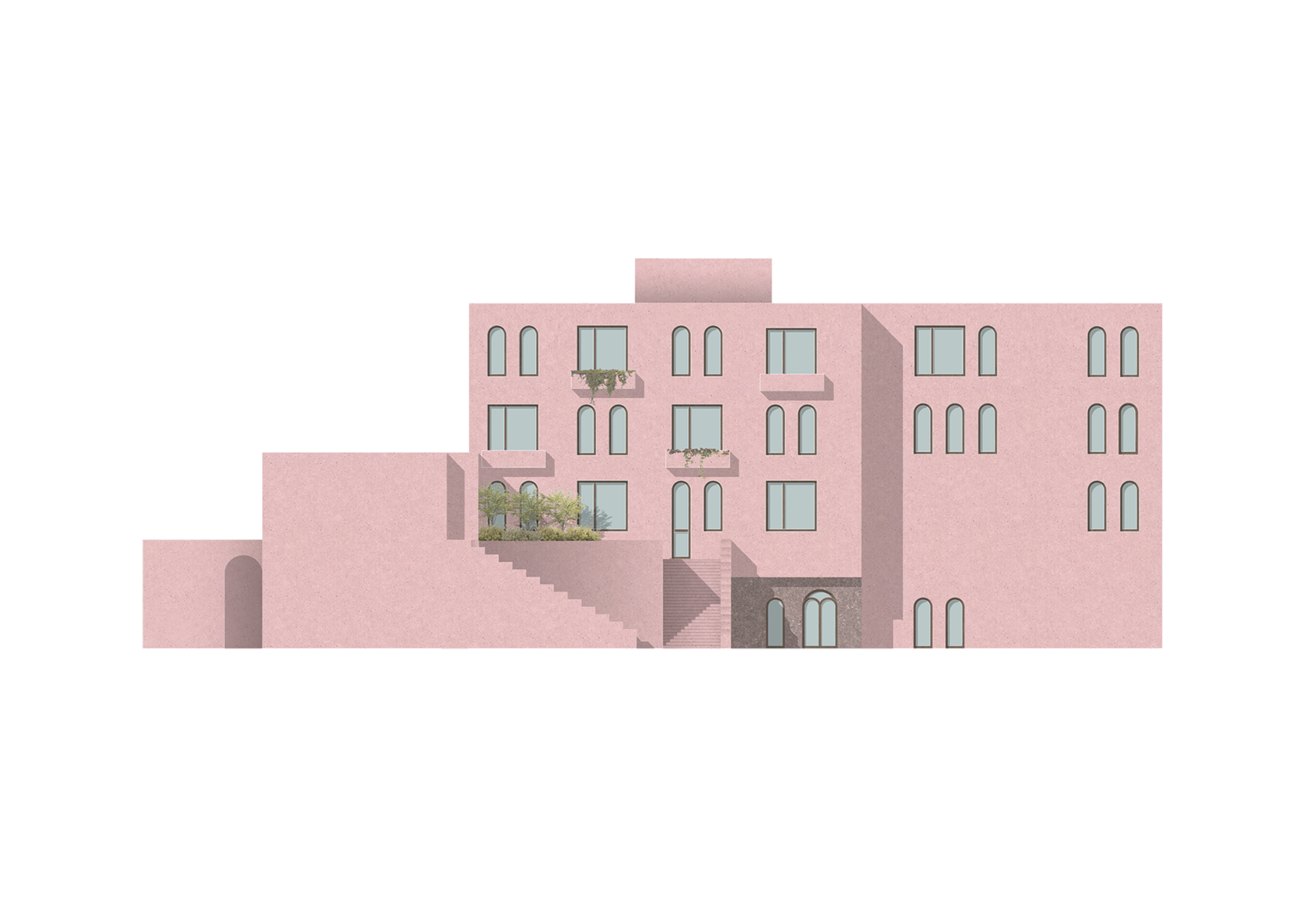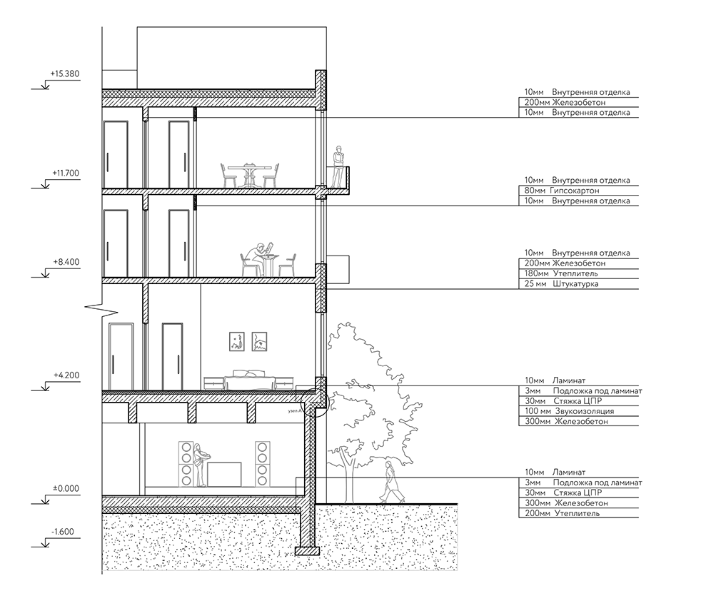 Acid House. Жилой дом в Новых Черемушках // Фасад Sketchup, разрез Revit + Photoshop